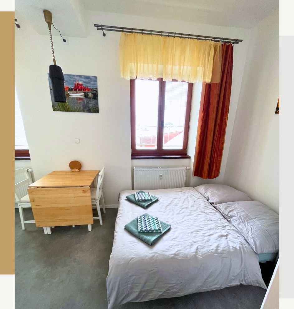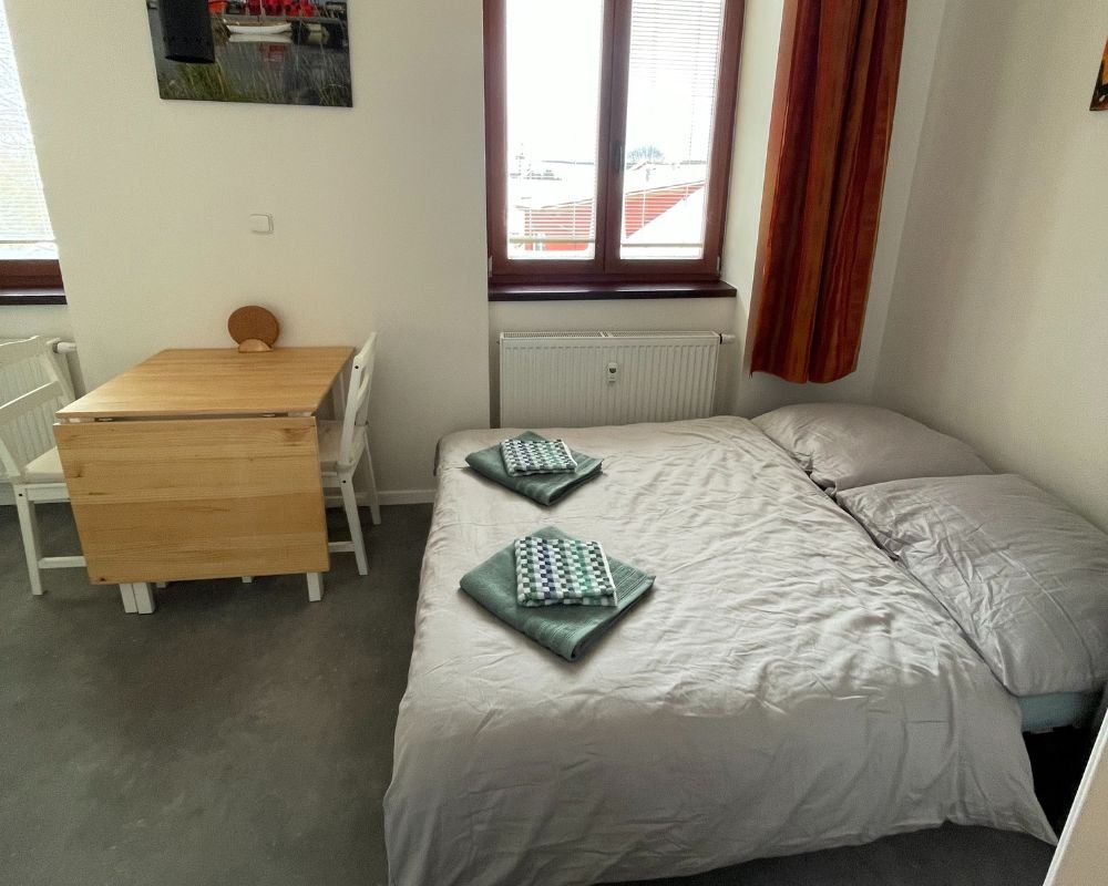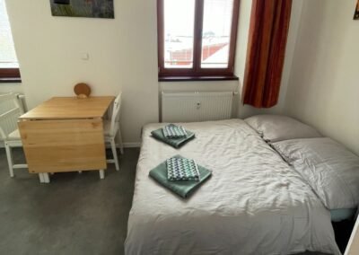 Byt má samostatnou ložnici s manželskou postelí 1,6 x 2 m, TV a prostornou skříň.